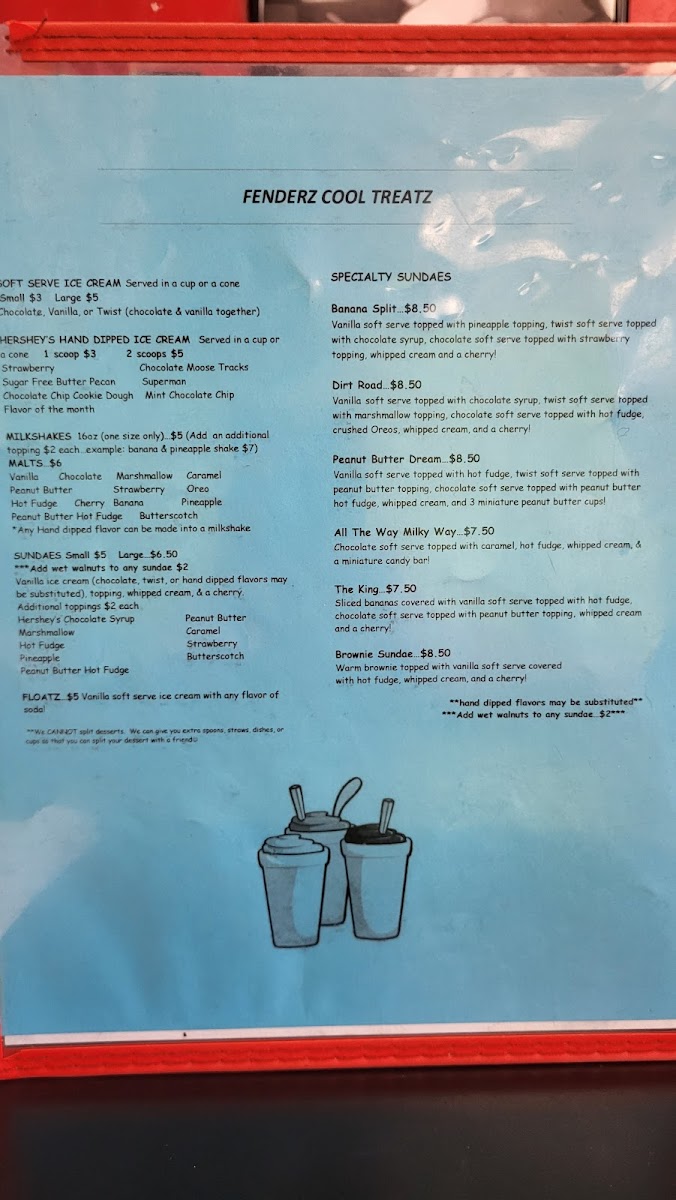Fenderz Drive In, located at 3627 Virginia Ave in Collinsville, VA, is a classic hamburger restaurant that exudes a delightful 50s retro vibe. The moment you step inside, the nostalgic decor and upbeat tunes transport you back in time. Their menu features a range of mouthwatering offerings, including the legendary Fender Bender burger, a double quarter-pounder with a grilled cheese bottom bun—a true standout for burger enthusiasts. Marrying the old with the new, Fenderz offers delectable appetizers like handmade onion rings and deep-fried mozzarella sticks, perfect for starting your meal. Don’t miss their rich specialty sundaes, like the Peanut Butter Dream, which tantalize your sweet tooth. With attentive service and an ambiance that charms both young and old, Fenderz Drive In promises good food, great memories, and an experience you’ll crave to revisit. Whether you're dining in or grabbing a bite, this spot is a must-try for burger lovers.